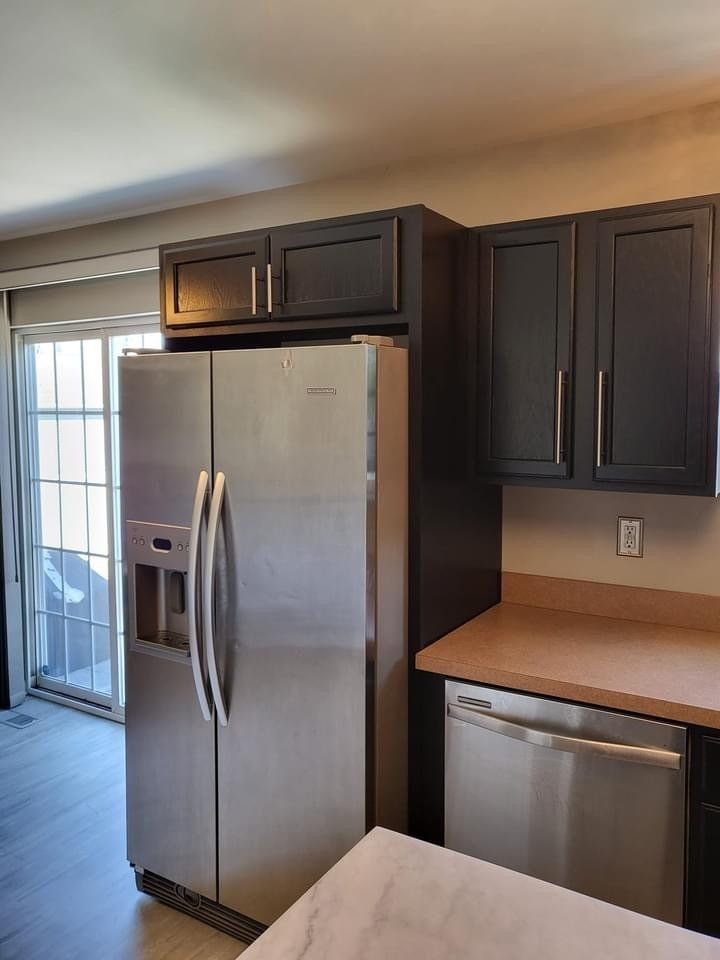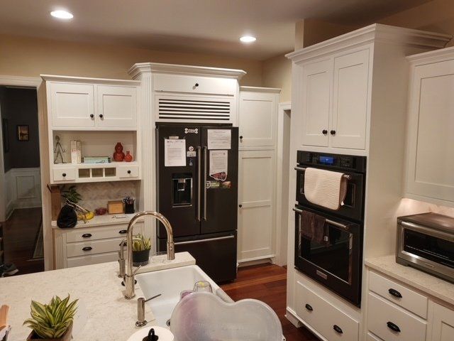Cabinet Refinishing is an excellent way to improve the visual appeal of your existing cabinetry. With this process, we can update any kitchen, so your old oak kitchen can now get a modernized look. We fill the grain and prep the doors off-site and finish with a KCMA approved finish.